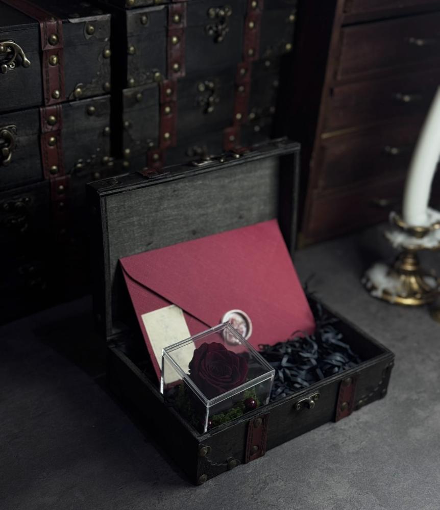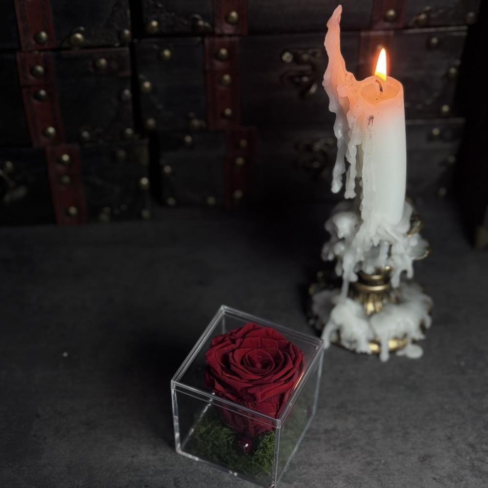 1- وردة دائمة تعيش لمدة سنة واكثر , تكون الوردة مغلفة خارج الصندوق مثل الصورة الموضحه في الاعلى